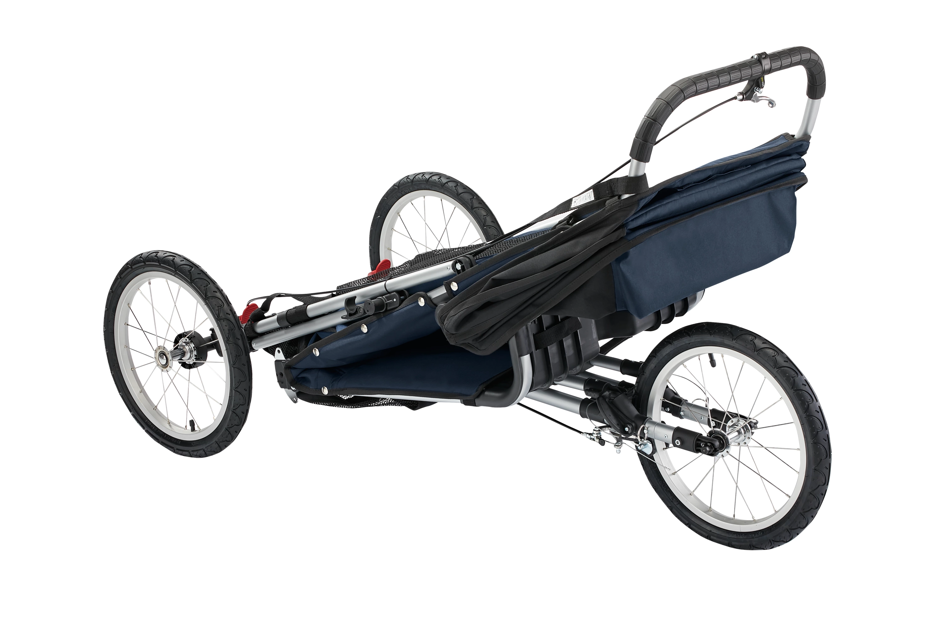 • single 16″ wheel – ideal for jogging, rough terrain or general walking from “a to b”