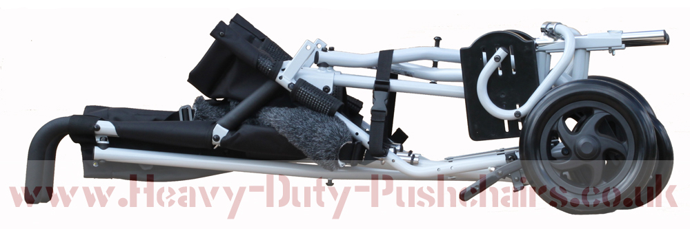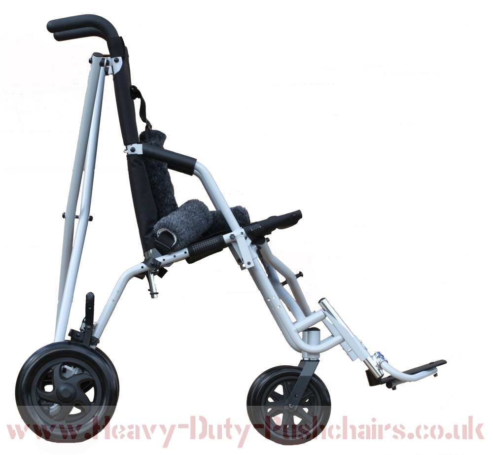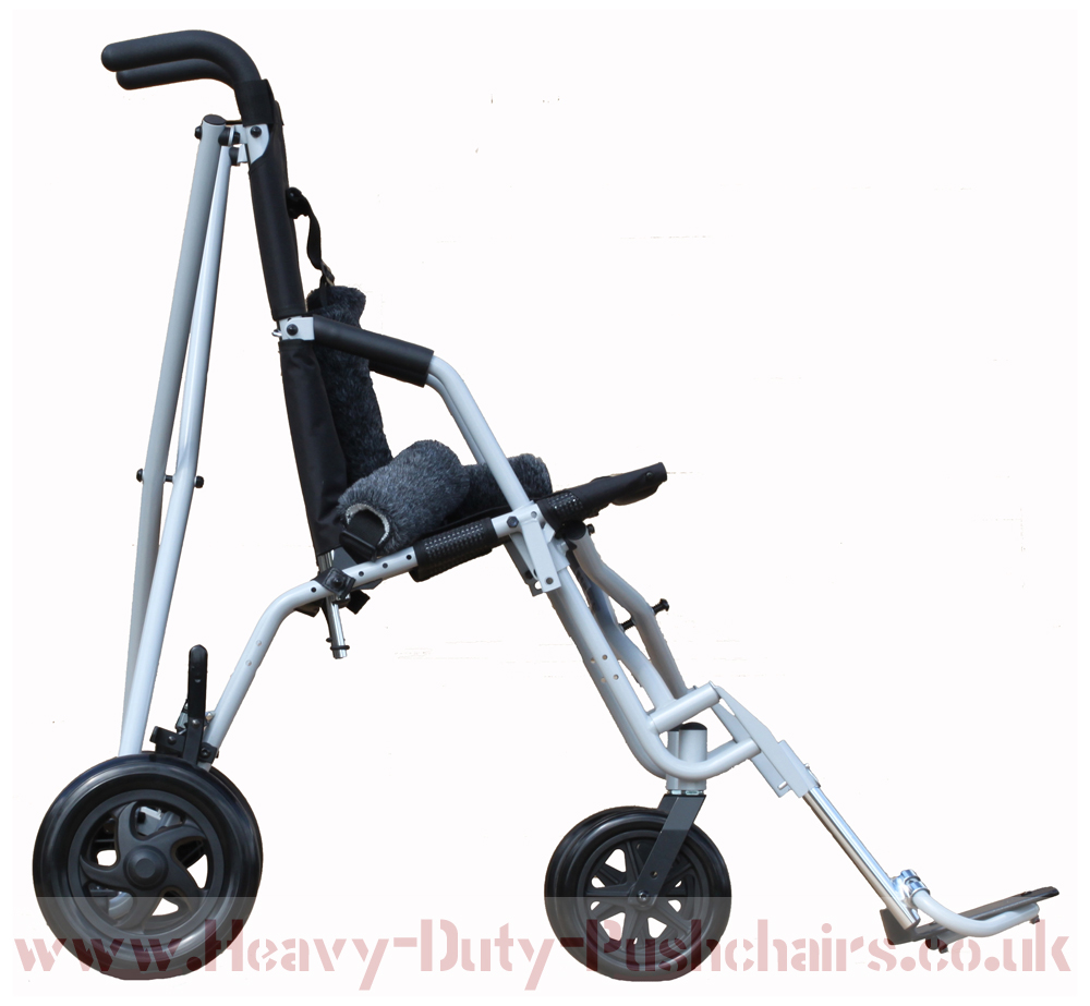 A Crash Tested pushchair suitable for use in a vehicle. Can also be used for a child with severely challenging behavior where you need something very robust. If you need something larger than a standard pushchair which has more growth room than a Budget XL or a Maclaren Major Elite and is more robustly made (because the occupant has challenging behaviour or it needs to be used for transportation in a vehicle) and you don’t want to spend a fortune on it then the Trotter may be the answer for you. If the child is a co-operative occupant then the Ergo Lightweight Pushchair may be a more practical option – lightweight and compact. At one level the Trotter is basic pushchair for a larger child which is so well made that it will take the sort of punishment that an unco-operative child can give which would break a Major Elite. It is heavier than a Major Elite but it’s that strength and stability which will give you more confidence. Surprisingly on it’s wheels it feels like it moves more easily – because the larger wheels make it more free rolling – it’s only when you lift it that you feel the extra weight. At the next level the Trotter is a basic pushchair for a larger child capable of taking a much wider range of sizes, so it may last much longer and need replacing less often as your child grows. There are four sizes of the Trotter we focus on the models with the 14″ wide seat which covers the lower leg length of a standard 4 year old to someone over 6 feet tall (provided they are below 45kg weight). Children often outgrow the seat and lower leg size of the Maclaren Major Elite and can seem uncomfortable and ‘perched’ in a small pushchair even though they are well within the weight limit, this may be especially true of a young person who is slim and long legged. There is even an optional headrest extension for the longer upper body. For a child requiring postural support you can use a seat insert with the Trotter, for example a BodyMap or Stabilo Vacuum Support Cushion System. Next level is if you need a piece of equipment which can be used to transport a child in a car, bus, school transport. The Trotter is tested to and complies with the necessary regulations for this use BUT you will need to buy extra accessories e.g. Headrest (for possible whiplash injury), Bus Tie Down Clips, Ankle Cuffs etc. as it is only with these fitted that the Trotter fulfils the requirements of the regulations. This is an area we are not expert in and so far are getting varying advice on what is actually needed – the provision for wheelchairs on buses has no ‘tie down’ and simply requires rear facing in the space behind the driver, parents sometimes complain that school transport wheelchairs do not have headrests and few people use any foot restraint! We can obtain the accessories which enable you to use the Trotter in a vehicle capable of taking a crash tested seat (i.e. only those specific to the Trotter not fittings for the vehicle). Our primary interest is to provide equipment for occupants who can walk but not far enough or not in the direction to want! We do not specifically target occupants whose physical needs are more complex, we do not have the training or expertise or, as a mail order company, the opportunity to do this. Top level use of the Trotter is for occupants who require more support – but this is more about their ability to maintain their seated posture, to use the pushchair, than any support which is clinically appropriate for their condition. So if you are interested in the Trotter but need to customise it for specific physical needs then we recommend that you seek the advice of a professional OT. Whilst the Trotter may be used for someone with special needs the seat may be unsuitable if they require postural management support, if in doubt please seek the advice of your physiotherapist. There are four Trotter models available specifications below are for the TR1400 14″ model The Trotter is ‘crash tested’ it is Approved for use in a vehicle tested to ANSI standard 7176/19, subject to the relevant optional accessories being used. The Trotter is CE marked and has been tested by the factory to ISO 7176/8 The Trotter has flexible plastic non pneumatic wheels which operate well on smooth surfaces not rough ground. The Seat can be configured to suit the occupant and has adjustable seat angle. Whilst the Trotter may be used for someone with special needs the seat may be unsuitable if they require postural management support, if in doubt please seek the advice of your physiotherapist. Please note that the specifications listed below are as accurate as is practical to give, they are rounded for ease of presentation and are subject to manufacturers change without Notice. If a particular dimension is critical to you then contact us for an exact figure. Trotter Pushchair prices: (inc. delivery to UK mainland) For a formal quote please fill in our form here. For more information and to order your Trotter Pushchair online, visit our specialist ecommerce website: Or call us on 01363 881110 and we will take your order over the phone. There may be various sources for help with funding, not just for mobility equipment but also day to day living needs, e.g. Disability Living Allowance (DLA) This is a Benefit, financial support from the Government if your child has a health condition. This is a universal benefit it is not means tested so it does not matter what your family income is or if you are receiving other Benefits. You may not realise you are entitled to it and it is not for mobility alone it is to help with all sorts of additional costs you incur to support your child. If you are not already receiving DLA then we recommend you ask your health professional and visit here: https://www.gov.uk/disability-living-allowance-children/how-to-claim NHS Mobility Equipment The NHS provides equipment through their Wheelchair Services Departments but it's much more than Wheelchairs whic